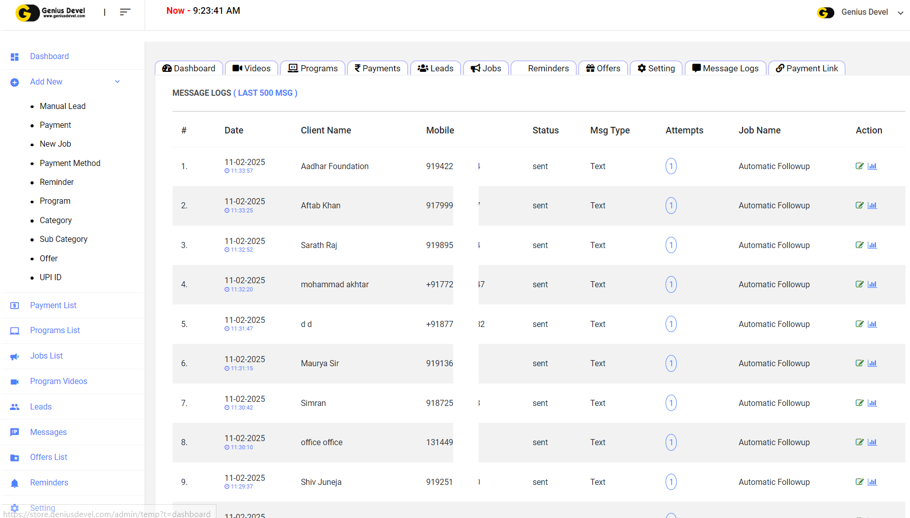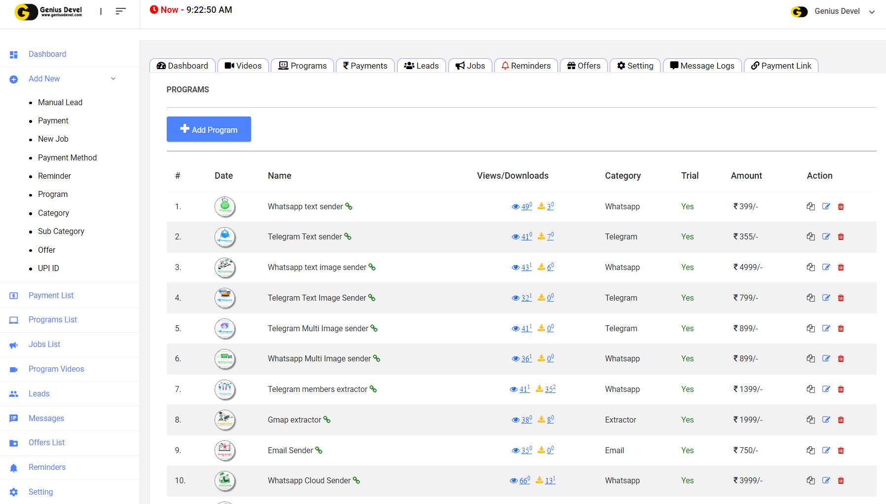 waise to market me bahut se leads tracker or management programs available hai jinki help se aap apni leads ko follow up kar sakte hai but un programs me aapko leads ko manul folloup kar ke unka status update karna padta hai and un programs i hope auto whatsapp followup ka feature bhi nahi diya hai but is program me aap apni leads ka folloup whatsapp par kar sakthai followup date automatic update hogi and har baar ek new message jaaega saath hi aap yaha par manual bhi folloup update kar sakte hai.